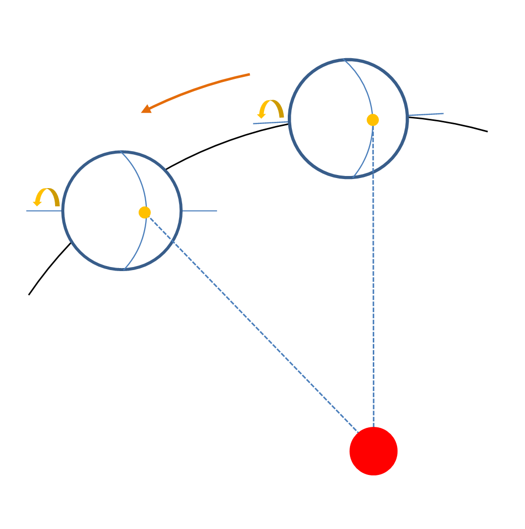 자 그런데 뭔가 이상하지 않나요? 왜 1년간 태양의 위치가 변하는 것일까요? 이 것을 알기 위해서는 지구의 운동을 이해할 필요가 있습니다.